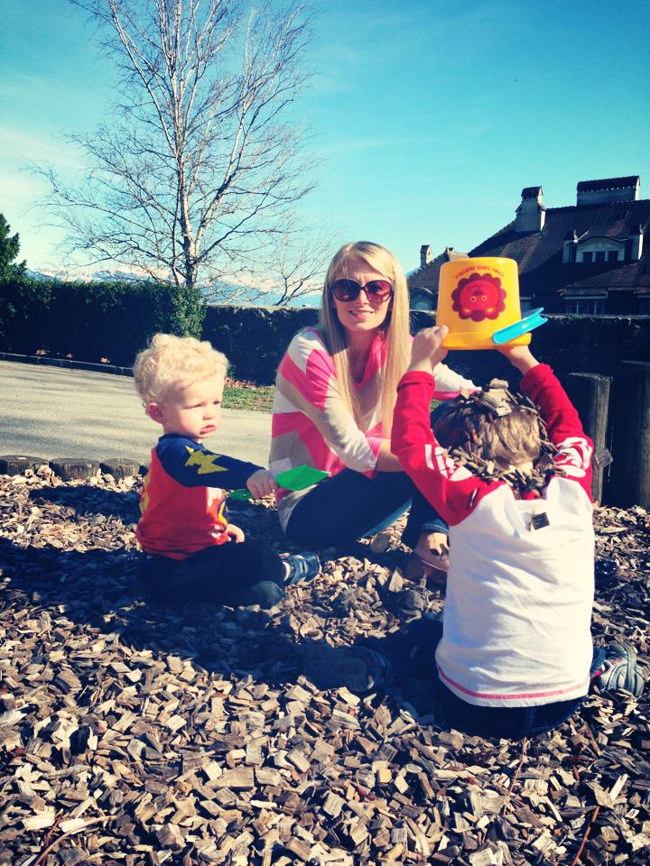 Sunday we went to church then headed down to the Port de Pully or the Marina. First we ate a very nice lunch and the boys were tremendous, then we strolled over to the park and played for a good 2 hours. This park is great, it had a little train that the kiddos can ride on (I may have mentioned this before) and this is probably bad to say but to our luck it was their lunch break. When the train is working, Henry just wants to keep riding it over and over again and that’s fine, but we like for him to get his energy out. Instead of riding the train, he just pretended to be a train and walked all over the park on the tracks. This park is right on the lake, I mean you have to be a bit careful it’s so close. Another great perk to this park is the fresh gelato and sorbetto stand…to die for! We made it home for naps and both boys cooperated and napped at the same time. After nap we headed to the park nearby our house. Funny enough one of Henry’s classmates was there so we played with then the entire time. The little boy is 3 and his sister is 18 months, perfect combination for us. They are from South Africa, I love meeting everyone here just because they all have such interesting backgrounds. Anyway, we had a such a fun time at the park and the kids were beat by the time we came home!
