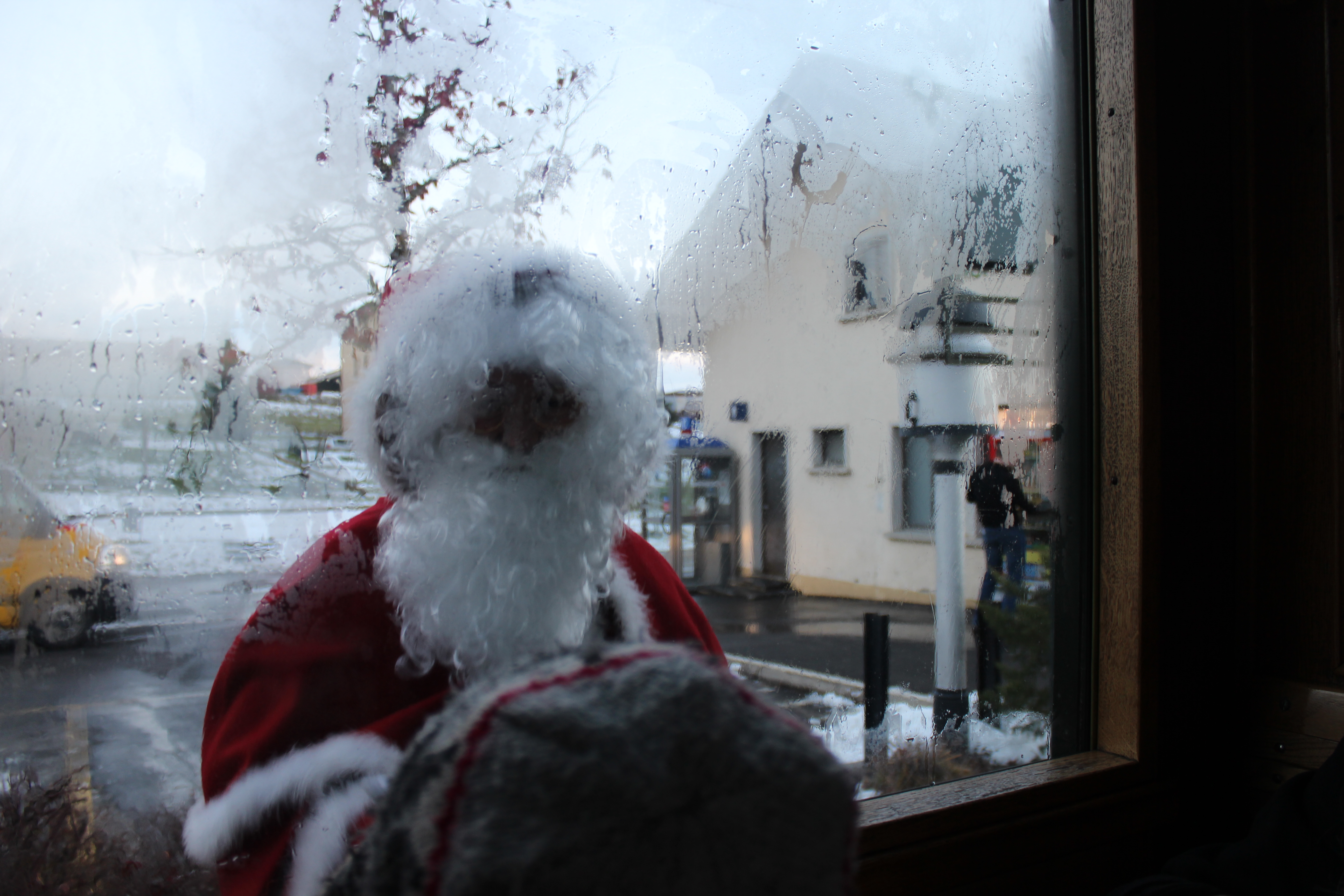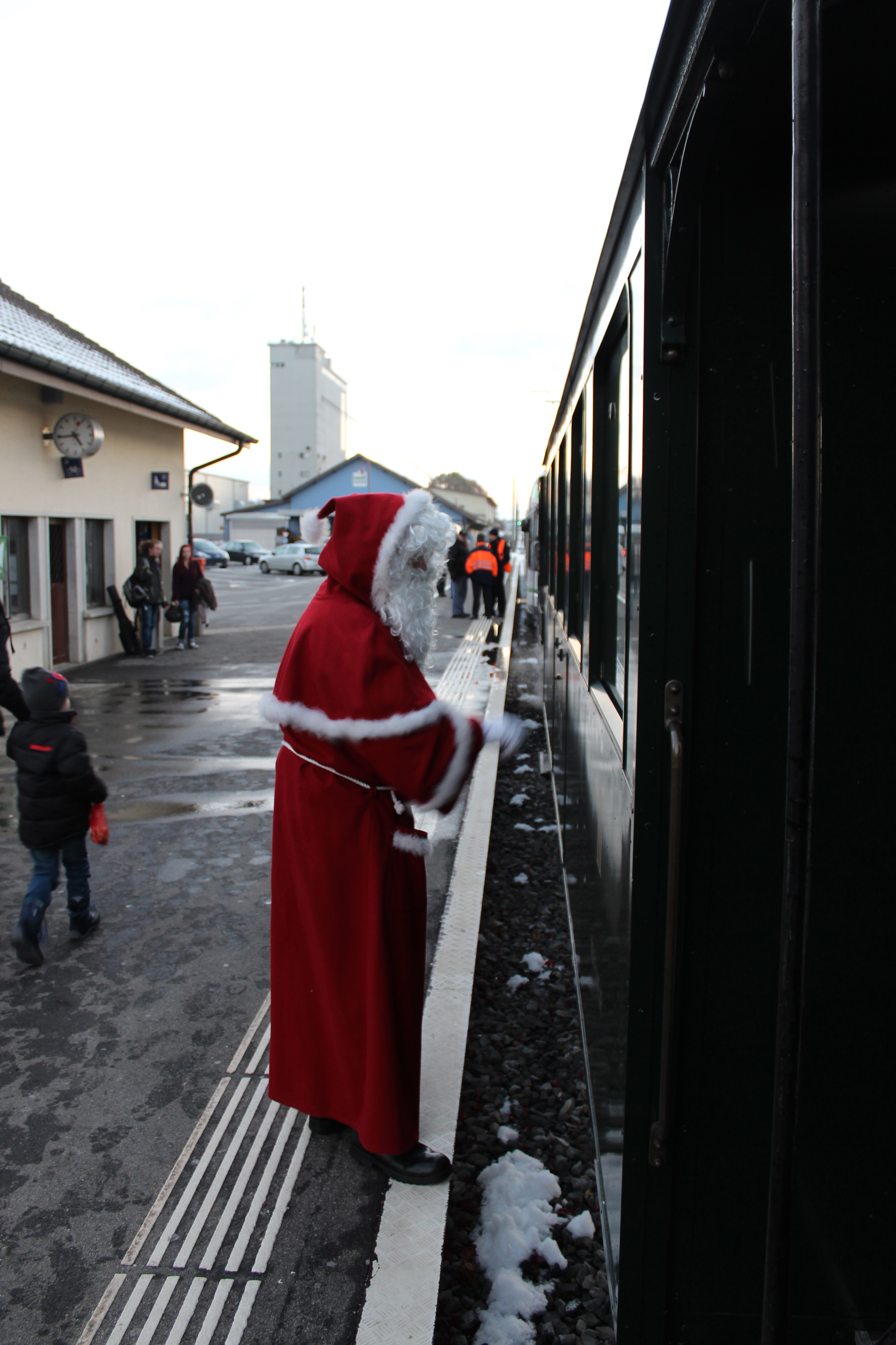On Sunday, December 1st, we drove to a little town of Echallens and caught an old fashion steam train complete with a Santa car. It was like a dream come true for little Henry…a real steam engine. It was a 20 minute train ride to another little town where it stopped and everyone could walk up to the Santa car and get their picture taken. There was also a car with mulled wine (hot wine) for the adults. It was truly magical, although quite chilly!