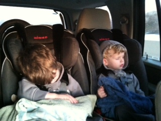 The boys passed out on the way to our parents after the long plane ride
