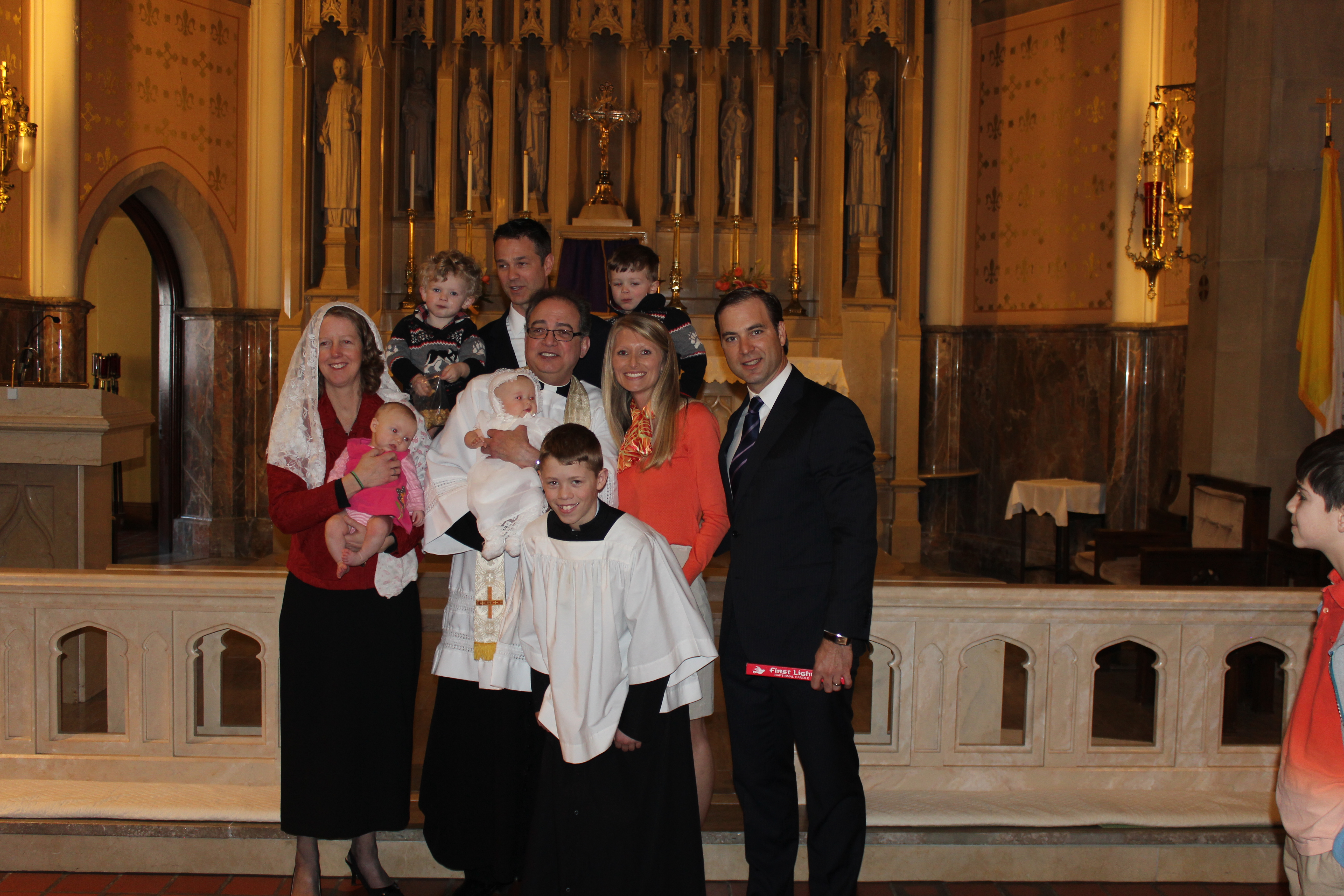 Sunday was another big day, Anna was baptized. We had her baptized at St. Lawrence, the same church Henry was baptized at 44 years ago. We had Henry’s sister Mary as the Godmother and our good friend/Henry’s co-worker Joseph from Louisiana as the Godfather. It was a beautiful day for a baptism and Anna did great.